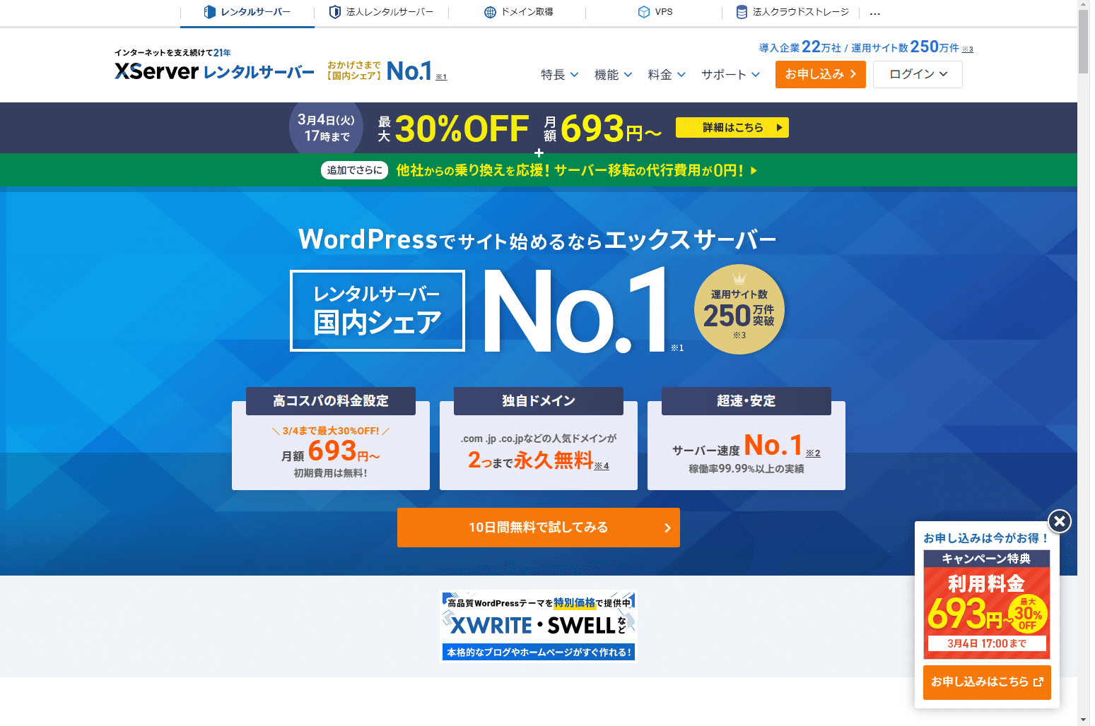 エックスサーバーとは、サーバーとドメインを一括取得できる